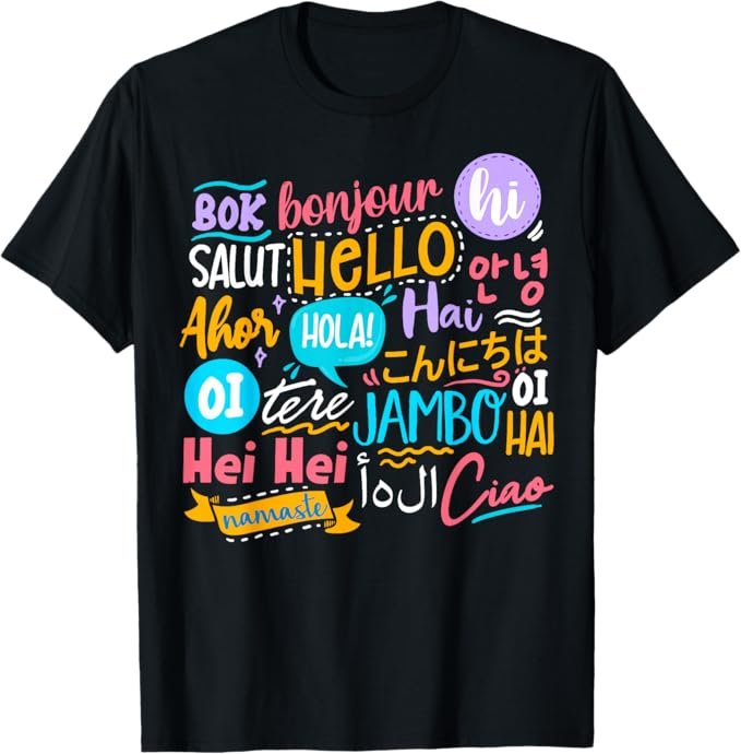 Fun, nerdy shirts that celebrate the language learning journey is a great gift for language enthusiasts, polyglots, teachers and students.