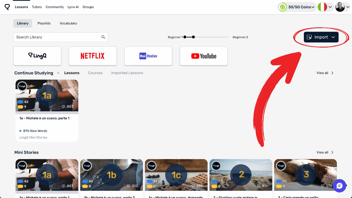 Now that you have LingQ set up with optimized settings, you’re ready to start your first lesson and start building that foundational vocabulary you need to read your first book. For this tutorial, we’ll use the first LingQ mini story since they are a good place to start for complete beginners.