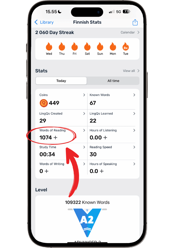 Longterm benefits and motivation: Consistency is everything. Those daily reading goals compound into massive results: effortless listening, natural conversations with natives, stronger writing skills, and you’ll be able to express yourself more eloquently and more accurately. Eventually, you won’t even need LingQ anymore but can just pick up any paperback book!