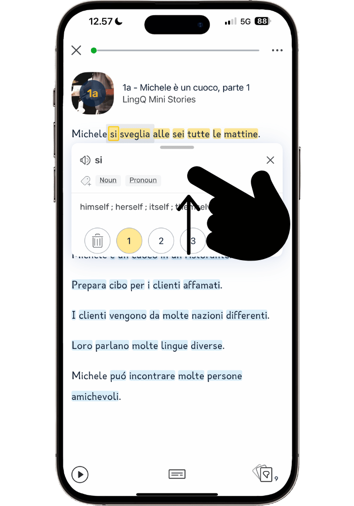 What we need to do is: click on the words and choose their definitions. This will make them into “lingQs”—which will turn them yellow.