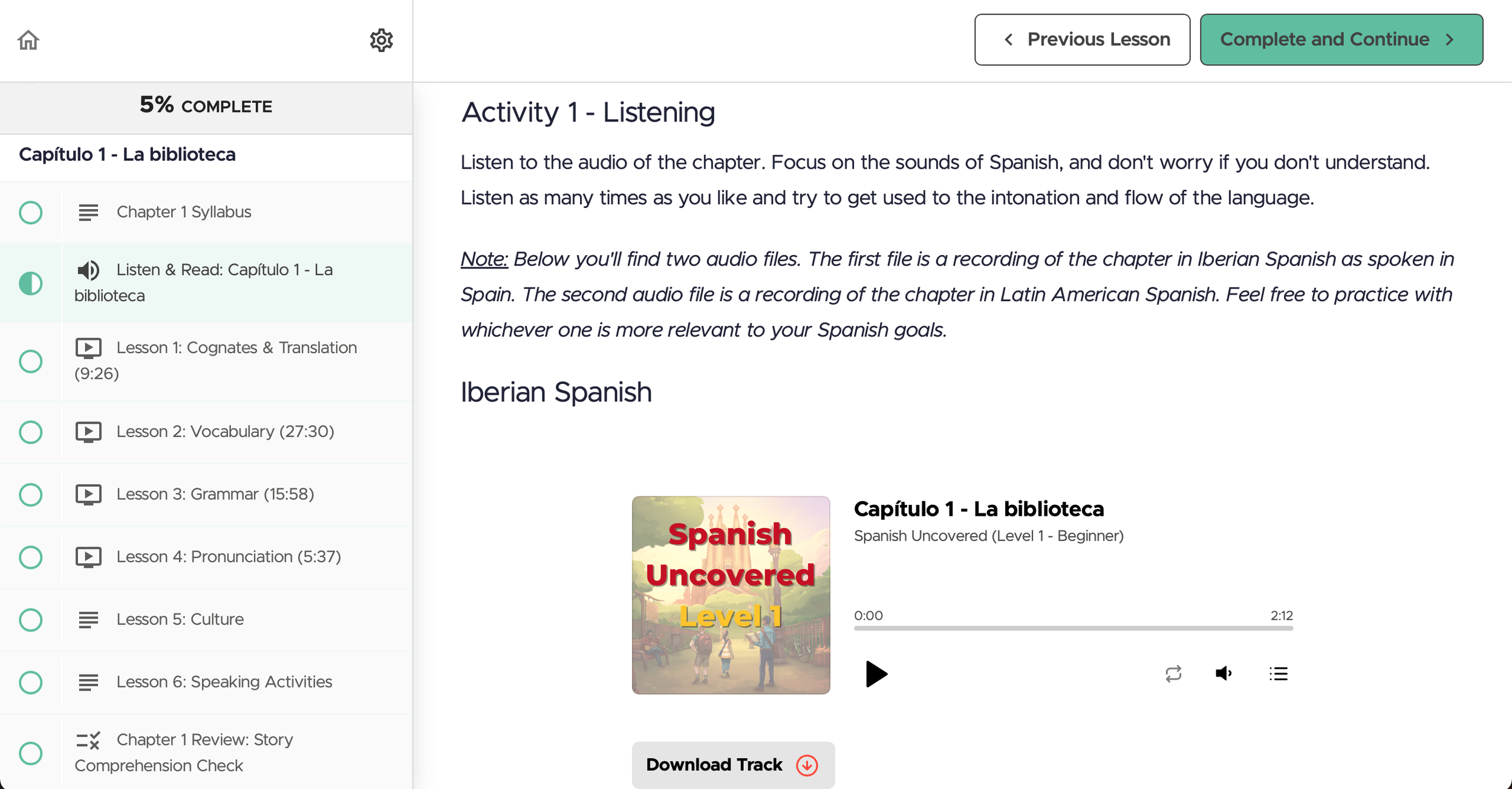 To give you an idea of what Spanish Uncovered includes, I’ll walk you through the different lessons of the course.